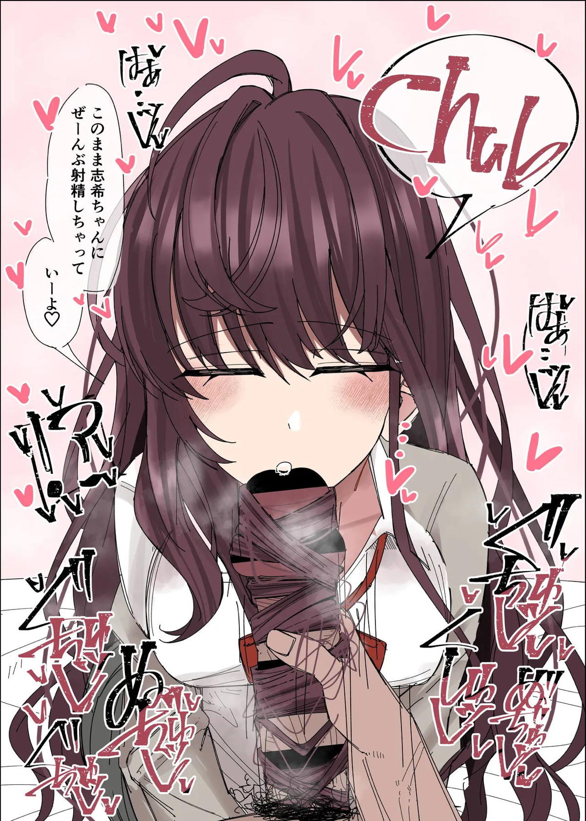 しぶりん優位ハート目騎乗位射精差分付きモノクロイラスト